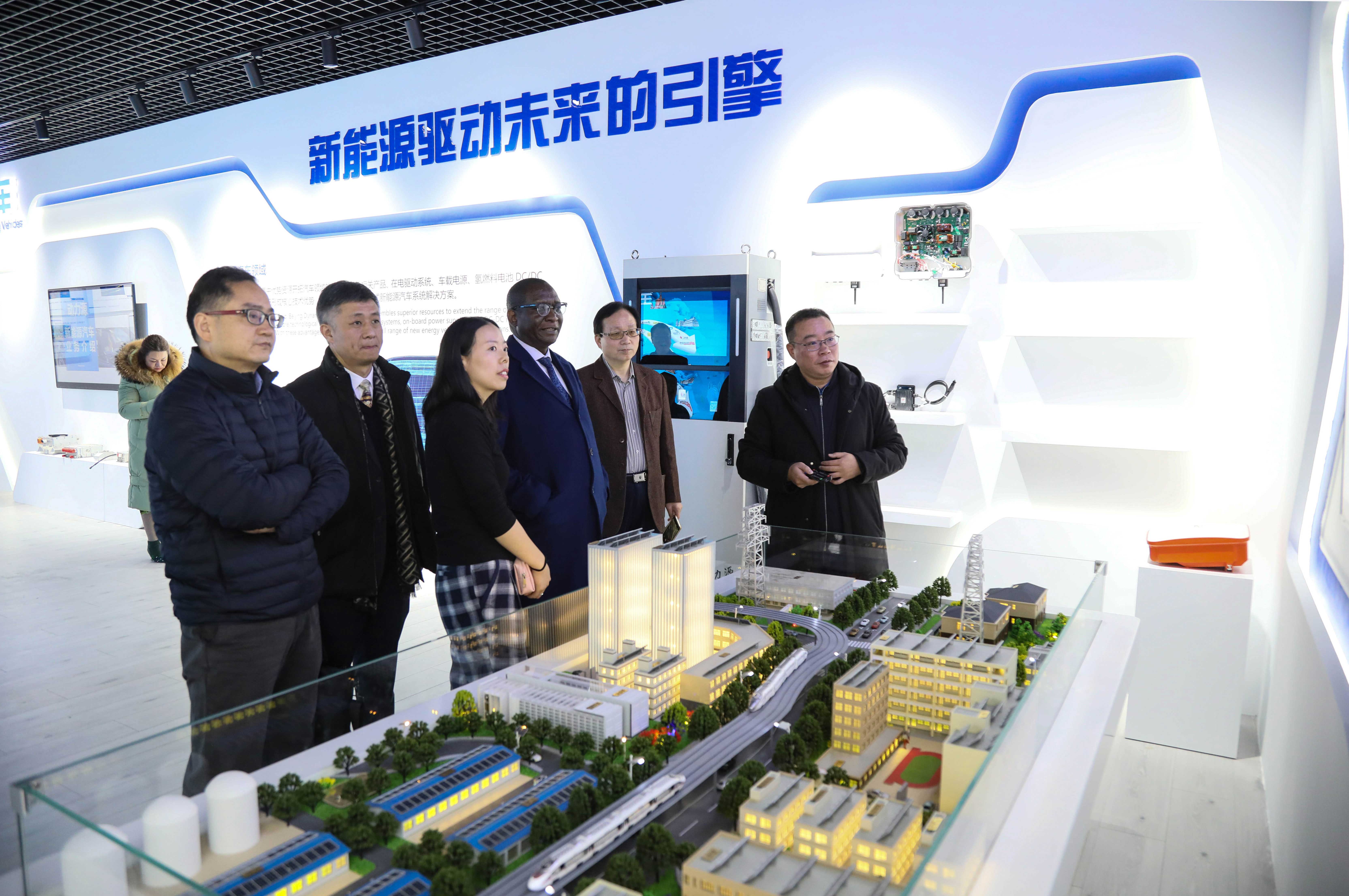 2020年1月13日,肯尼亚驻中国大使馆公使华维鲁·基曼尼先生、FOCAK国际有限公司总经理王芝凯、北京电源行业协会理事长北京大学教授其鲁、北京电源行业协会秘书长孙京伟一行到访动力源参观考察,就落实中非合作论坛北京峰会成果、拟投资肯尼亚新能源与交通基础建设项目进行洽谈。